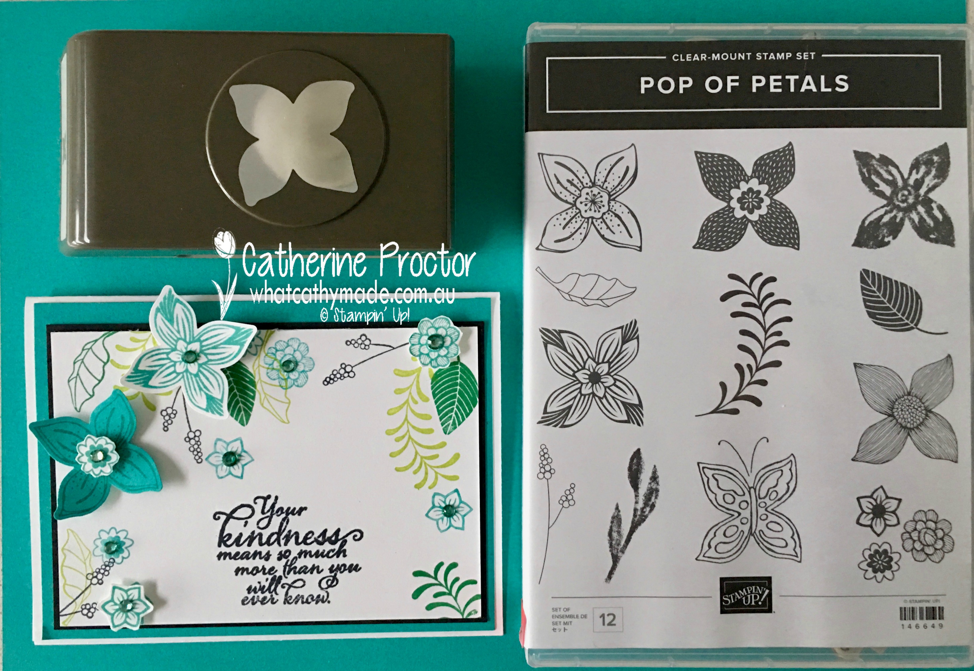 However, it’s the final card I’m most excited about…I used the new Pop of Petals bundle and I just love this stamp set and its matching punch!