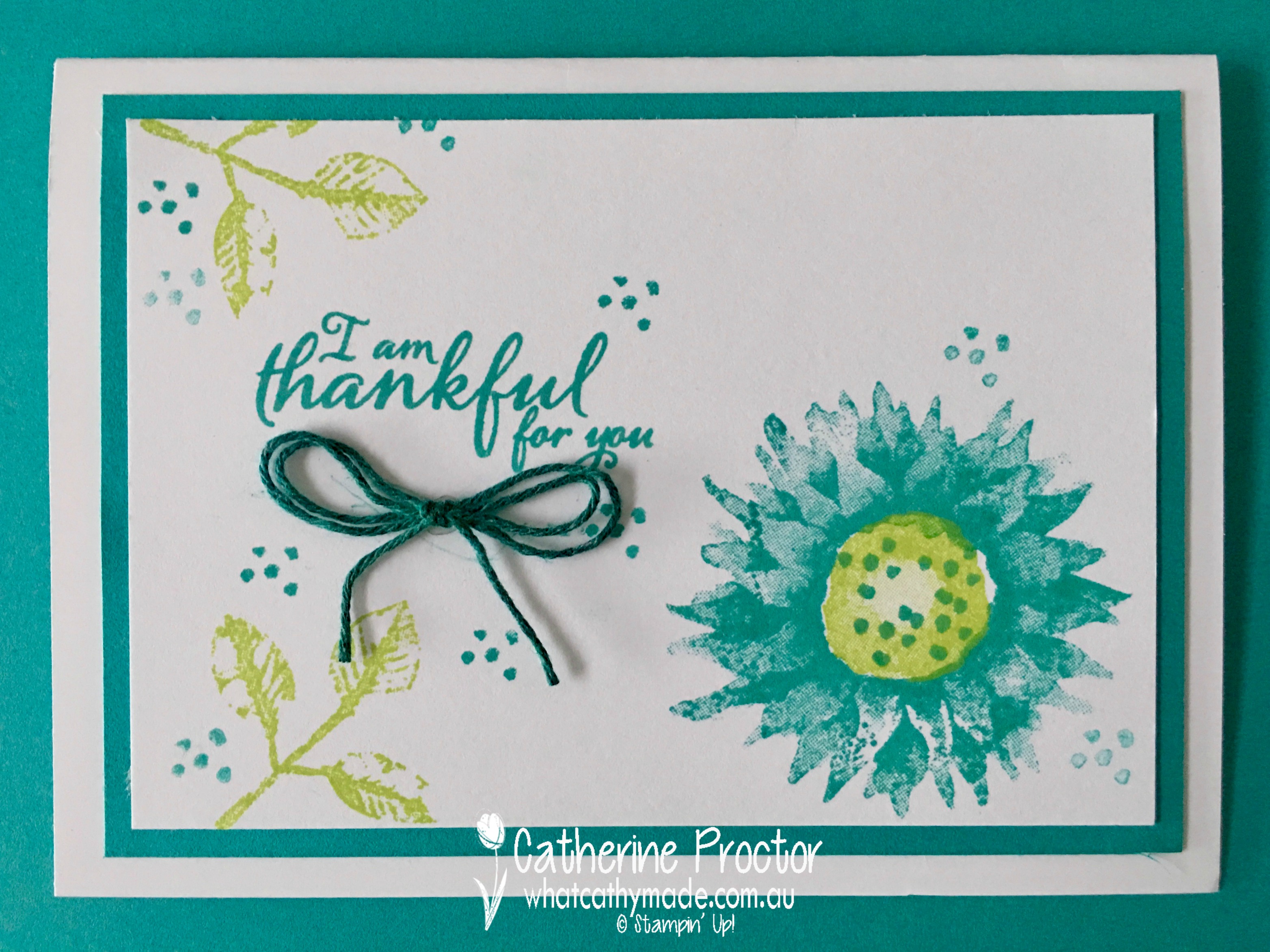 For the first 2 cards, I used the Painted Harvest stamp set to CASE some cards I’d seen on Pinterest, changing up the colours and the sentiments. This first card is so simple but it really showcases how well Lemon Lime Twist and Bermuda Bay go together.