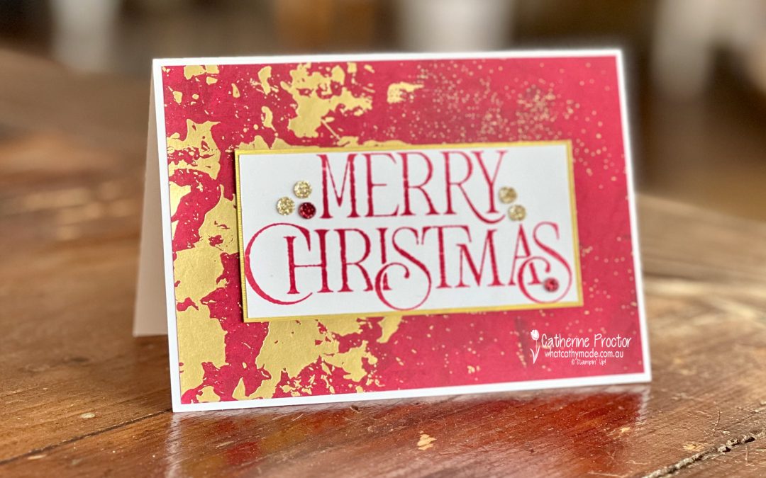 - The large Merry Christmas Stamp, inked in Real Red Classic Stampin’ Pad