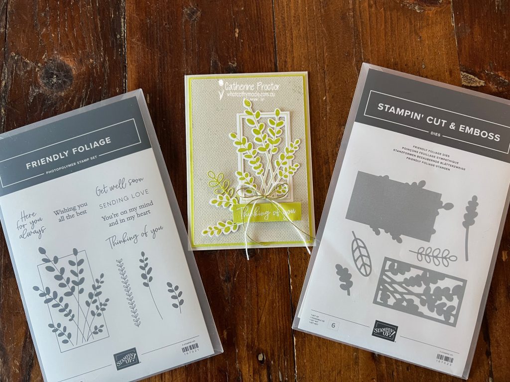 I loved this card so much I also purchased the Friendly Foliage bundle featured on it. Here’s my version of the card.
