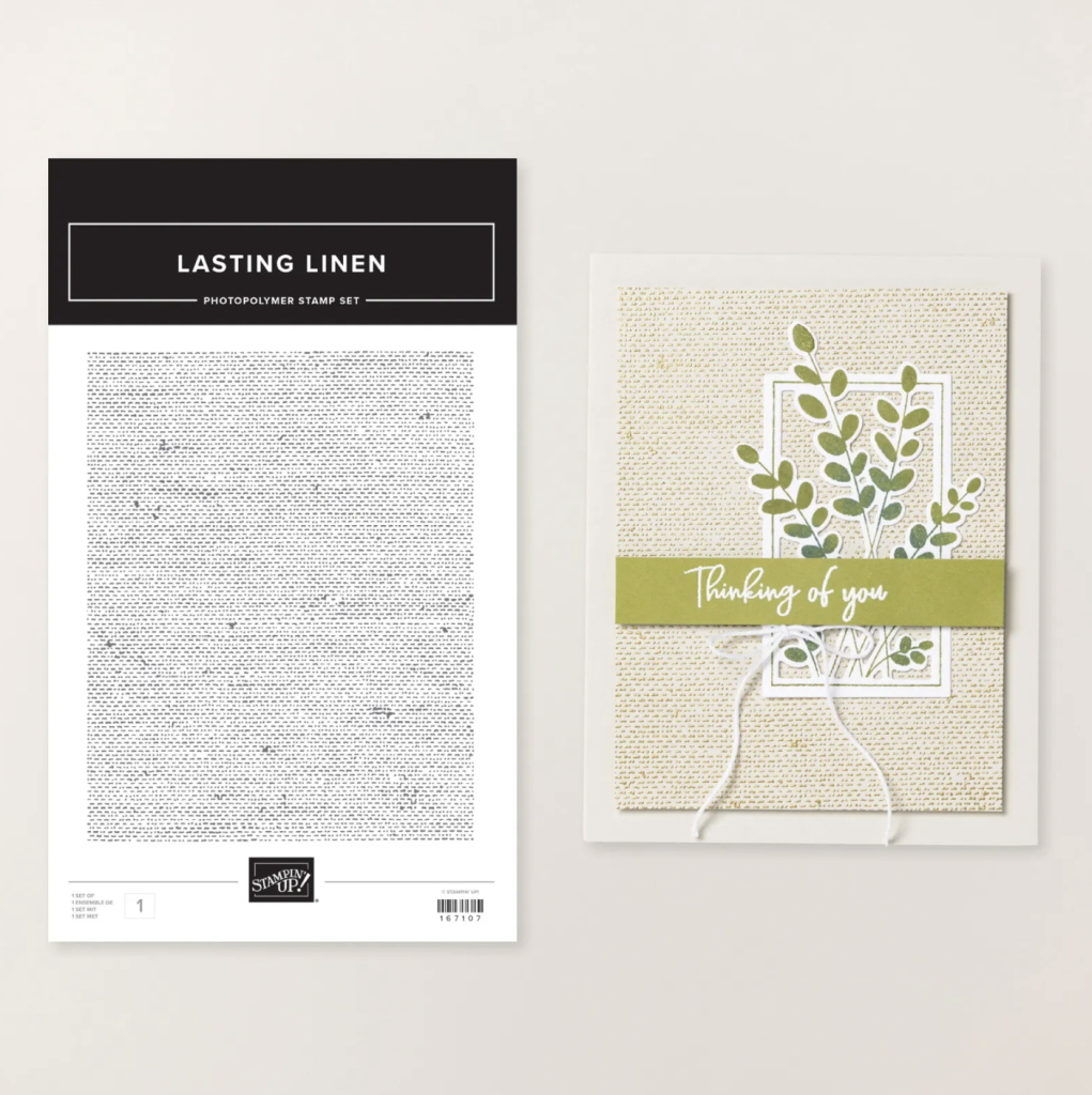 Week 28 is all about Lemon Lime Twist a vibrant, almost “fluro” green and I’ve taken inspiration from this project the Stampin’ Up! design team created to showcase one of the new online products, the Lasting Linen stamp set. This is such a versatile background stamp that will work with any colour!