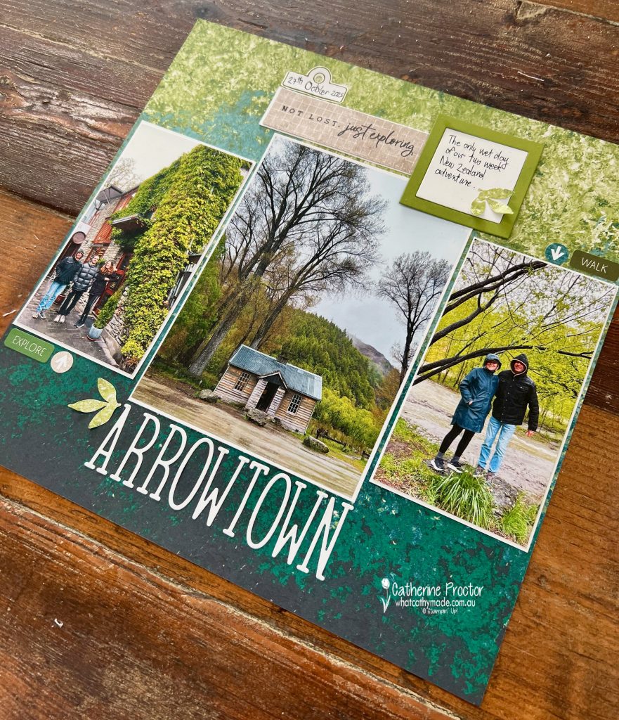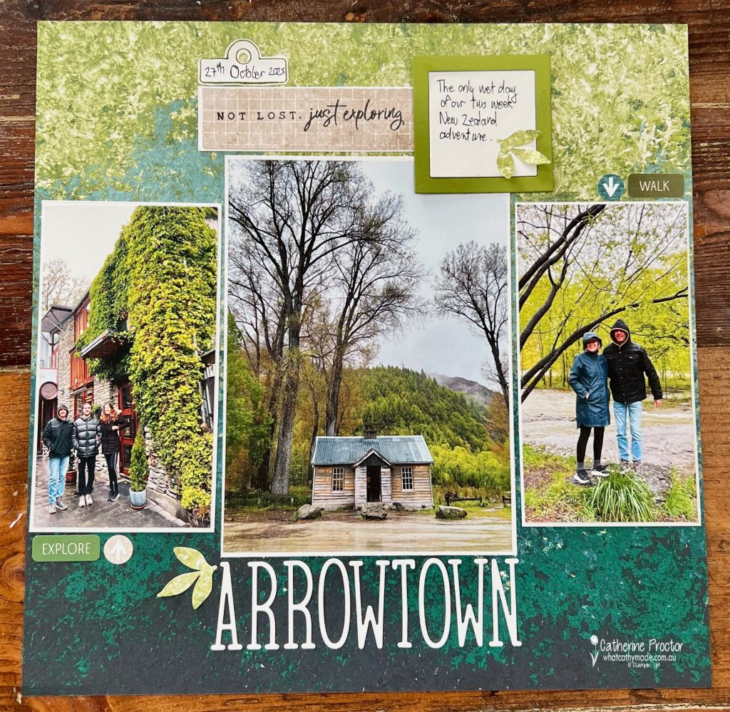 Slowing down, printing photos and telling the story on a full 12″ x 12″ page felt right. and the Nature’s Walk DSP was the perfect background for my photos of Arrowtown, New Zealand.