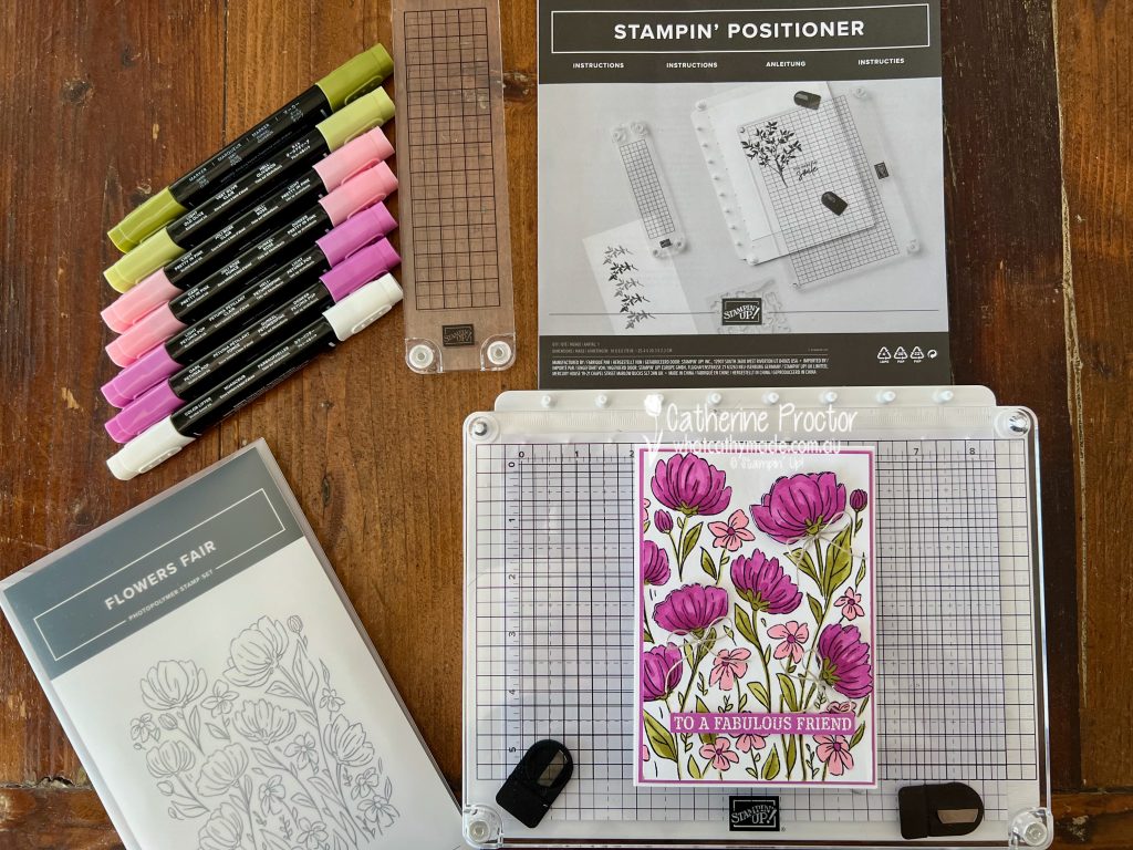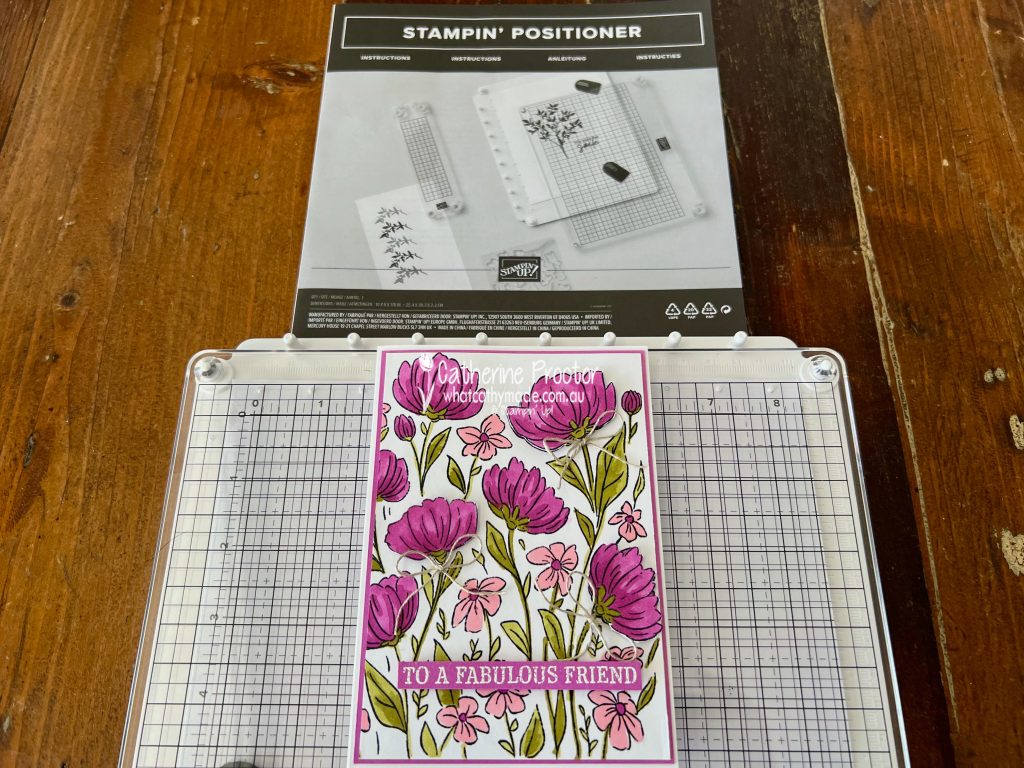 I used the brand new Stampin’ Positioner, a stamping alignment tool designed to make stamping easier and more accurate. It’s free with the current joining offer.