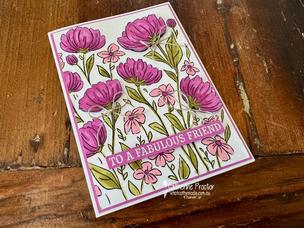 I’ve coloured the stamp with Stampin’ Blends in Petunia Pop, Pretty in Pink and Old Olive. I love this colour combination!